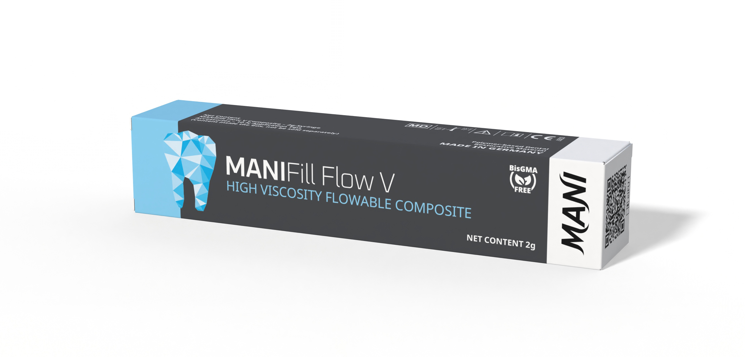 The light-curing MANIFill Flow composites – easy handling thanks to the different types of viscosity. MANIFill Flow-V 77% filler content combines both excellent flowability and high viscosity. It is a highly radiopaque composite for precise and minimally invasive restorations.